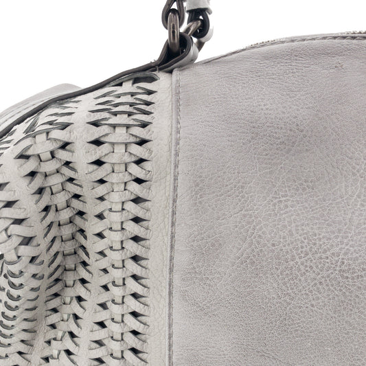 Vintage Doctor Bag Tasche Flechtoptik Grau