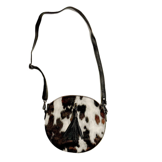 Kopie von Runde Umhänge Handtasche mit Kuhfell